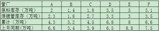 上面樣本管廠主要以華北地區(qū)為主,截至1月17日,天津唐山邯鄲主要管廠統(tǒng)計(jì):廠內(nèi)原料帶鋼庫(kù)存25.7萬噸,比上周減1.1萬噸;焊管庫(kù)存7.3萬噸,比上周降0.2萬噸;鍍鋅管庫(kù)存19萬噸,比上周增0.3萬噸;鋼管平均日成交量4.35萬噸,比上周降0.1萬噸。從數(shù)據(jù)來看,與上月同期相比大部分管廠庫(kù)存總量比上月同期有所減少,臨近春節(jié)放假,廠內(nèi)庫(kù)存有限,銷售壓力并不大。另外各管廠生產(chǎn)部門普遍在臘月二十左右放假,正月初十左右上班,停工時(shí)間在15-20天,各個(gè)管廠預(yù)計(jì)影響產(chǎn)量在3-5萬噸。